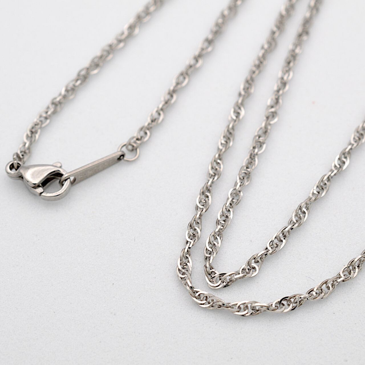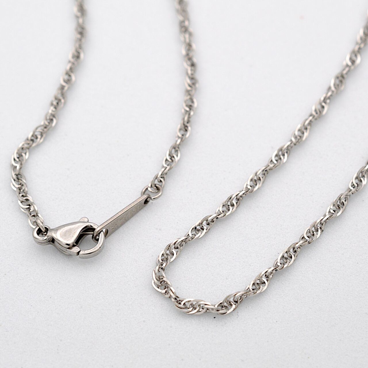 スティールカラー 太さ2㎜のルーズロープチェーン 長さ:45㎝(40㎝に長さ調整可能) :50㎝(45㎝に長さ調整可能) 素材:サージカルステンレス316L ※金属アレルギーの方もご安心してご利用頂けます。