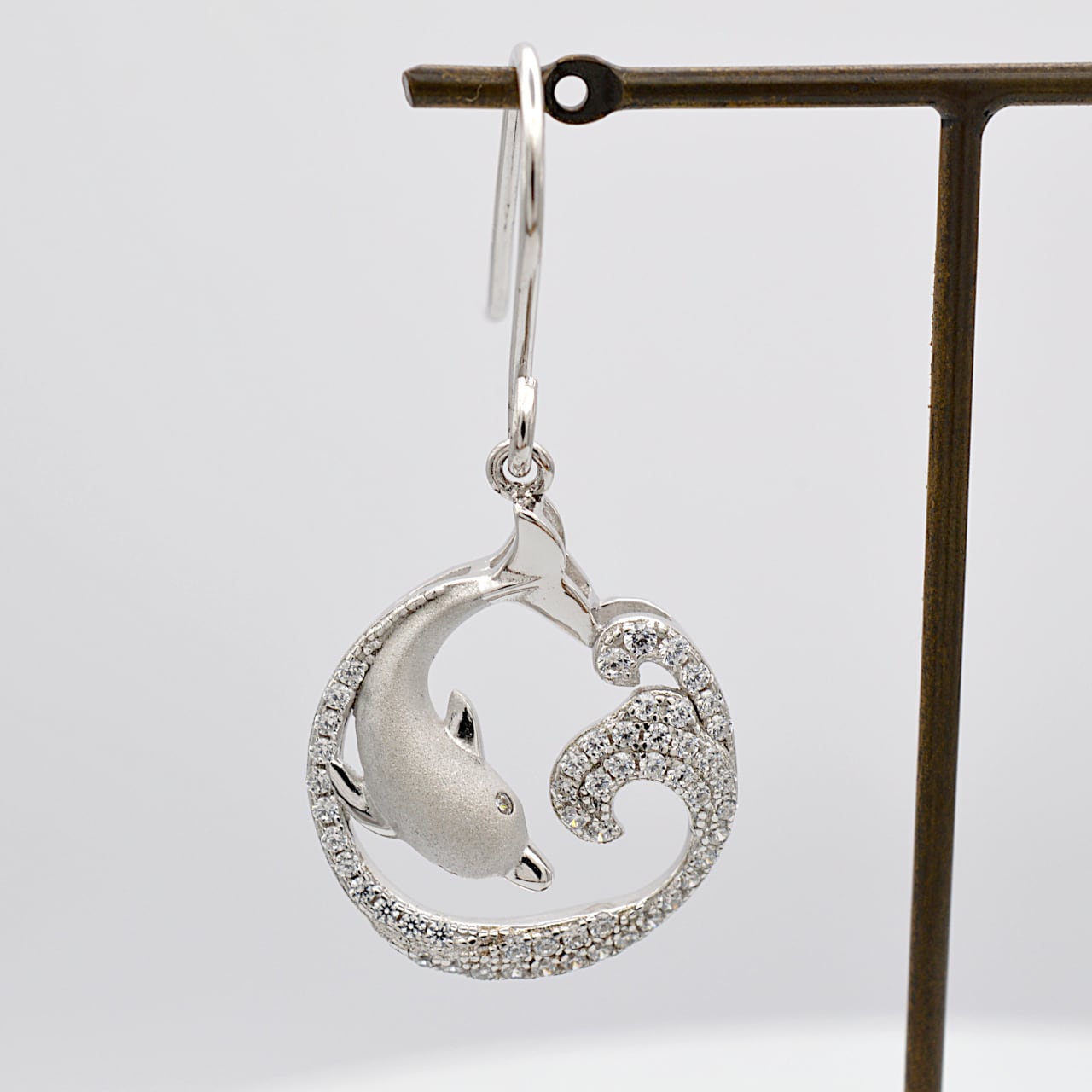 ドルフィンモチーフのsilverパヴェピアス ドルフィン Size Size 縦 18 ㎜ 横 18 ㎜ 素材:silver925 (ロジウムコーティング) :キュービックジルコニア 【ドルフィン(イルカ)】 ハワイ語でナイア 守護神のひとつとしてハワイアンに大切にされています。 (幸運を運ぶ使者)として仲間、絆を表現するのが ドルフィンモチーフです。