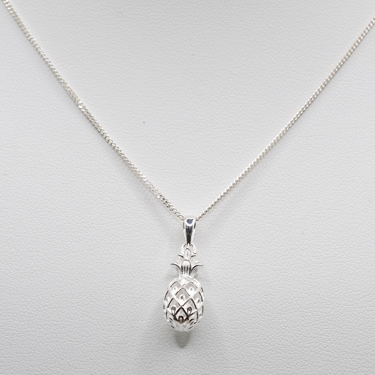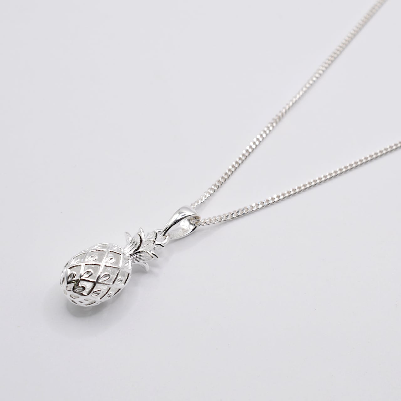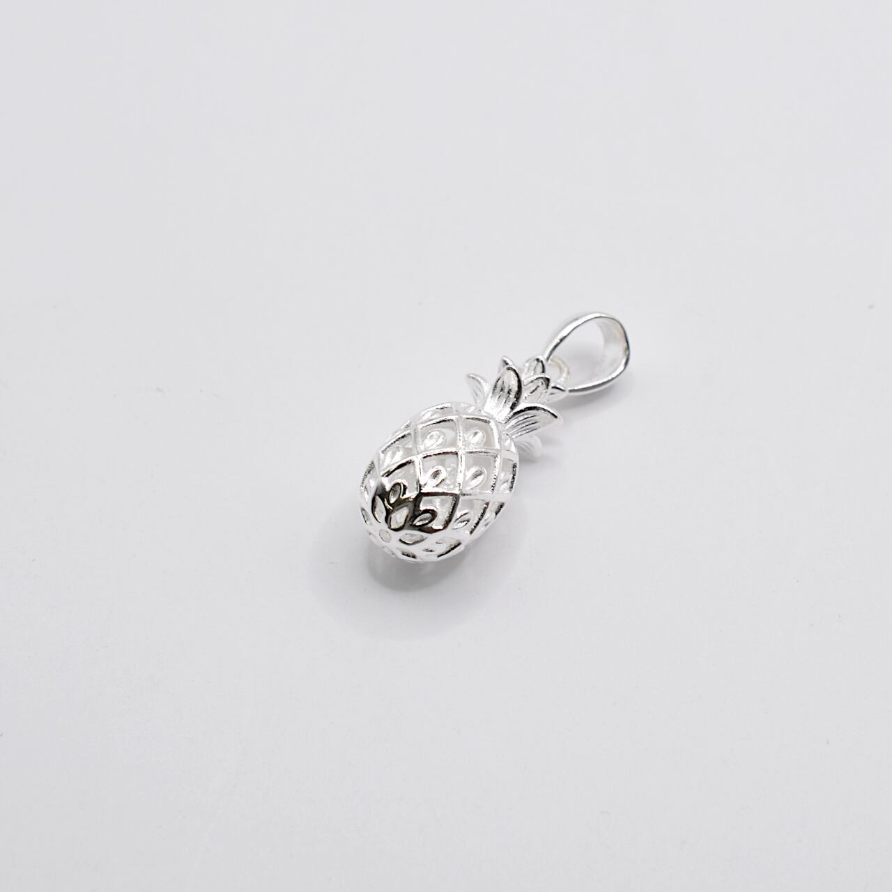 パインモチーフのペンダント 透かしデザイン 『パイナップル』 多くの実がなる事から繁栄や願いの成就、富と財運の象徴 と言われています。 ペンダント Size 縦 :17㎜ 横 :8㎜ 素材:silver 925 ◆画像のsilverチェーンは含まれておりません。 ◆2.5㎜のSTAINLESSチェーンは付属します(長さ:50㎝)