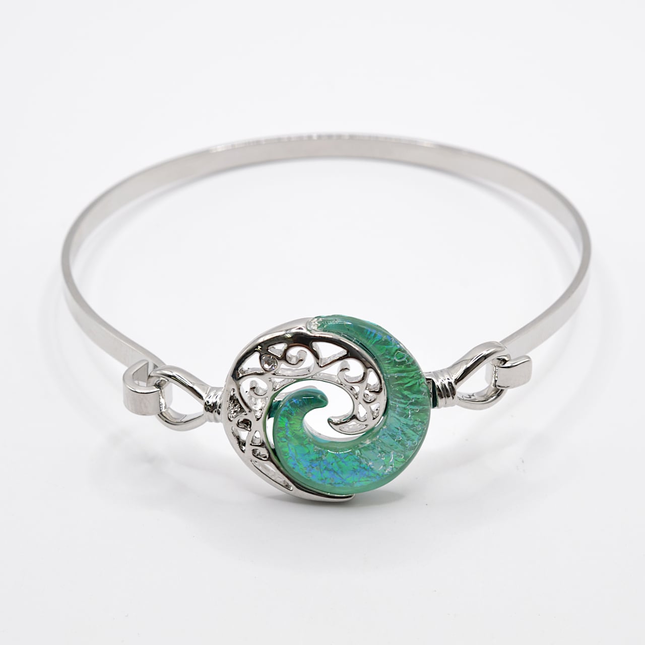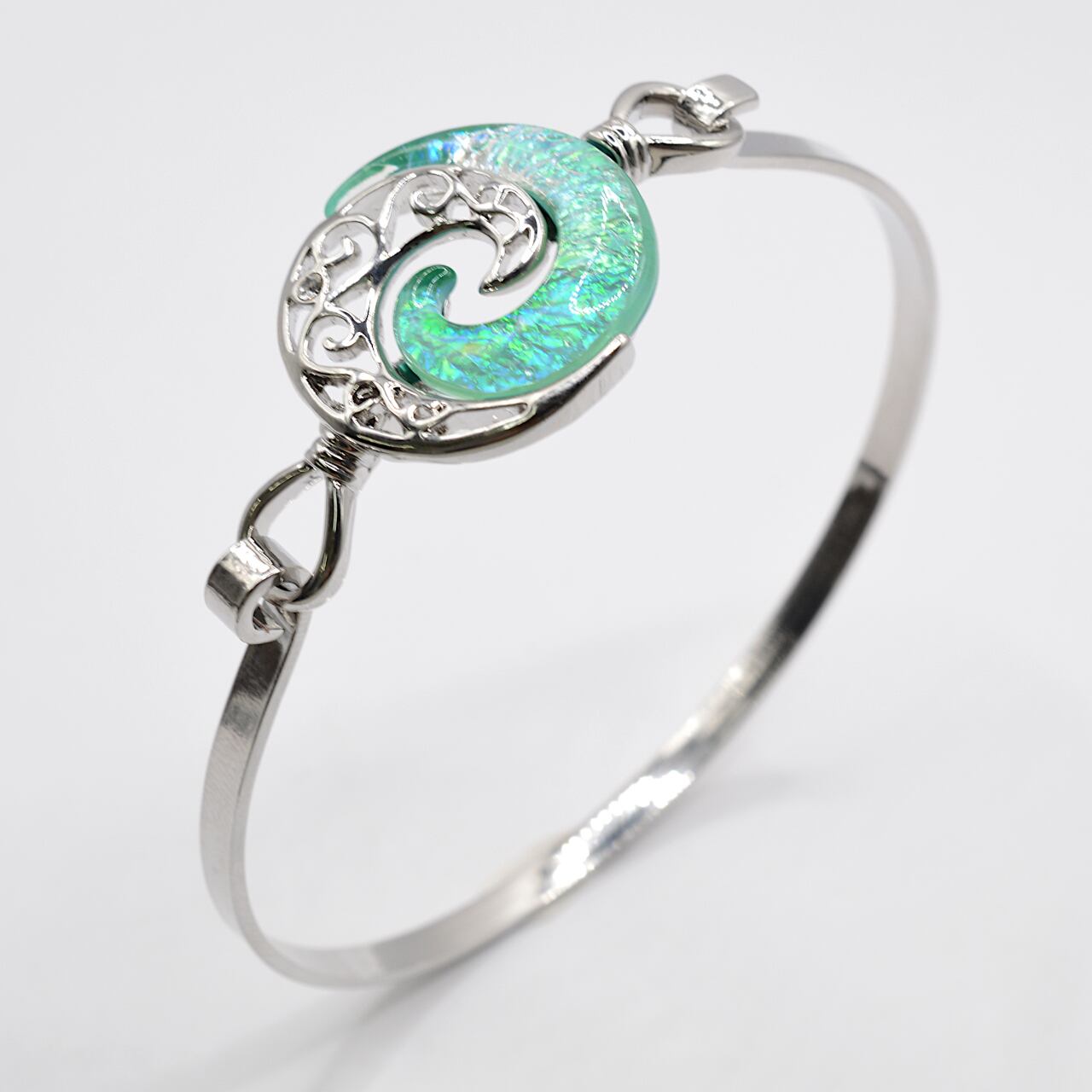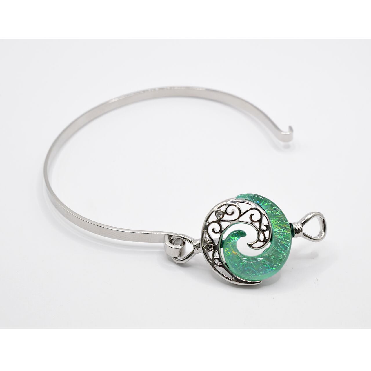 Wave(波)モチーフの グリーンカラー レジン(樹脂)ブレス Size 20㎜ × 20㎜ *フリーサイズ 素材:レジン(樹脂) :ステンレス(ワイヤー箇所) ◆ ◆