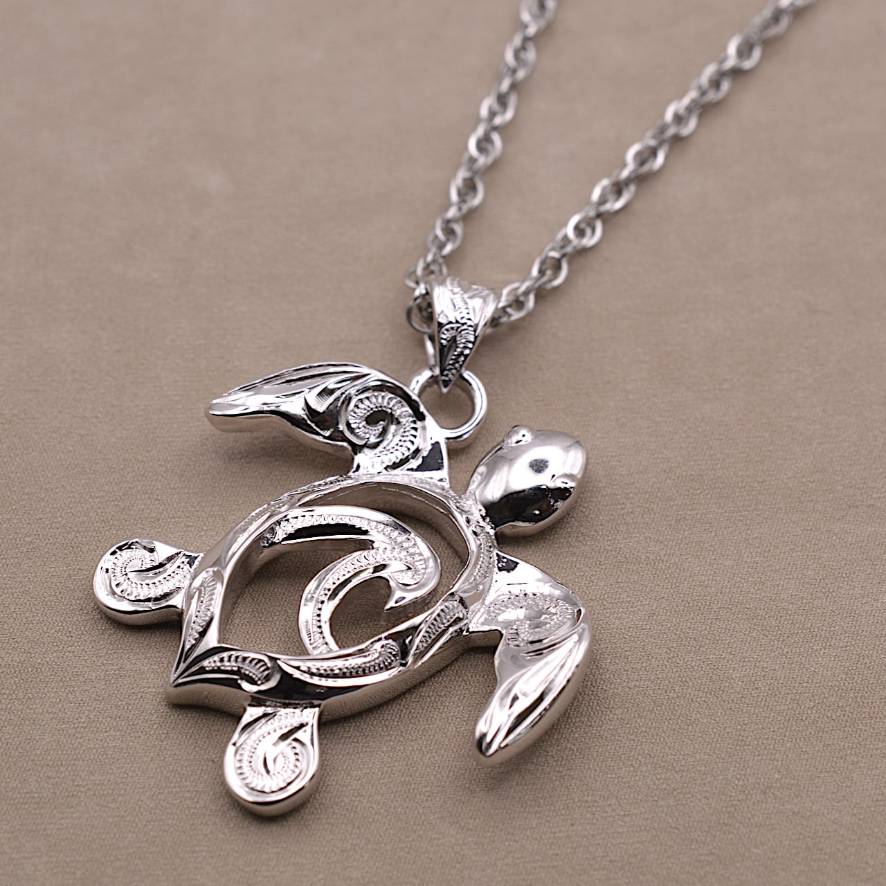 ハワイで「海の守り神」として親しまれるホヌ(ウミガメ)モチーフのペンダントトップ。