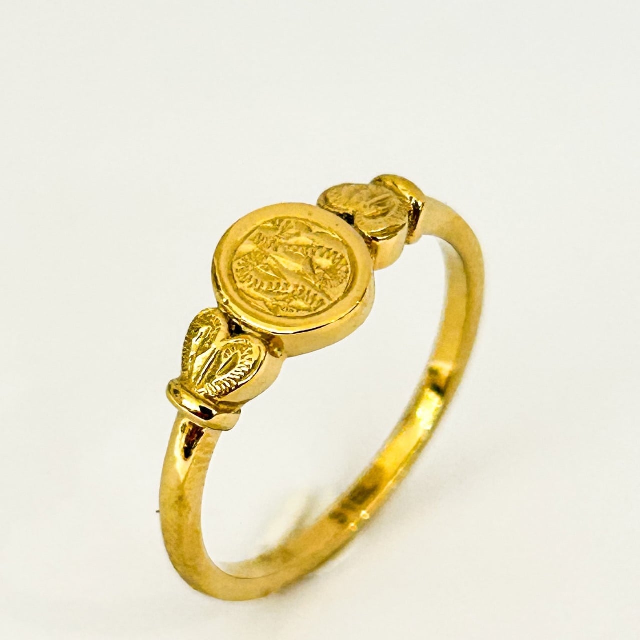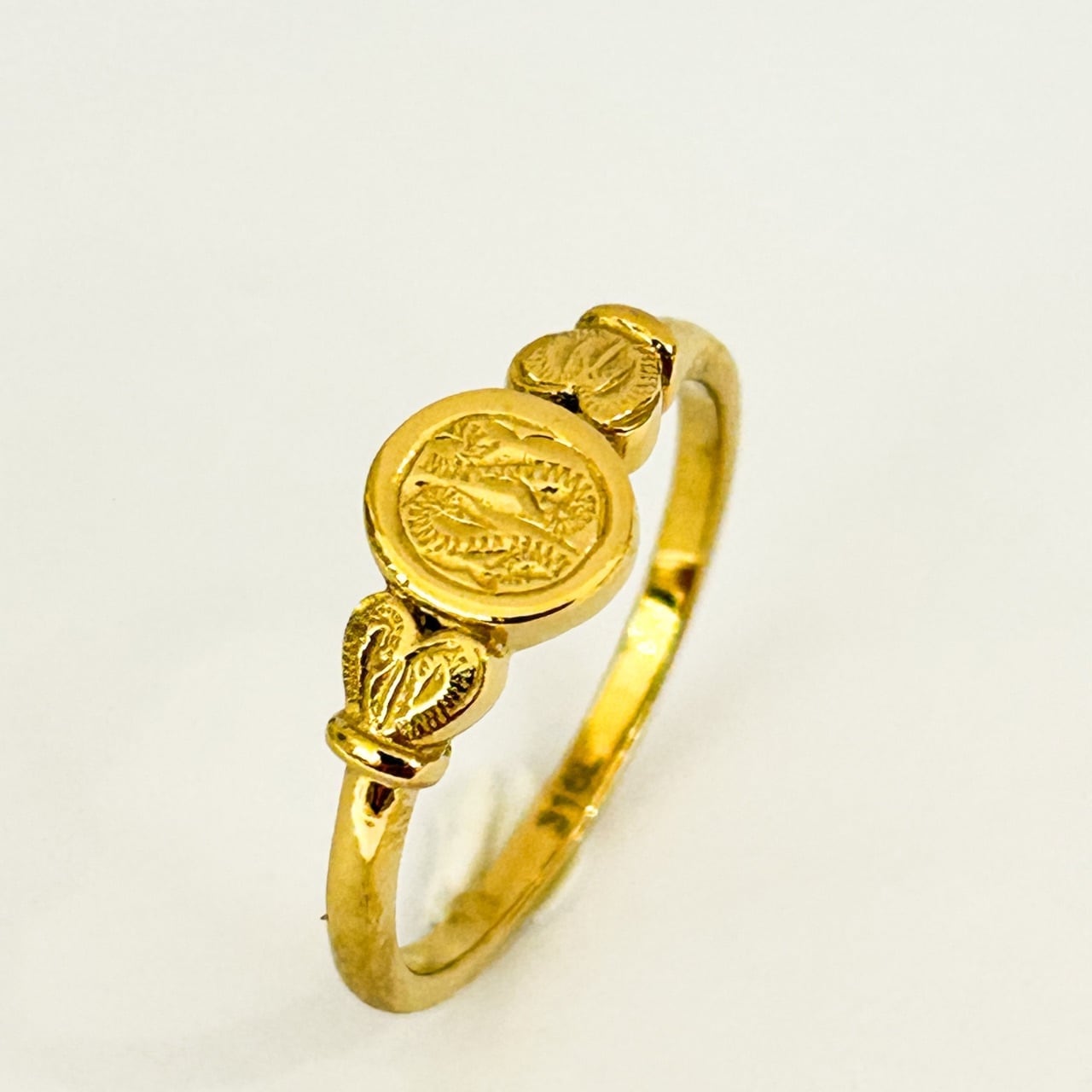 イエローゴールド 彫デザイン:スクロール(波) 素材:サージカルステンレス316L (金属アレルギー対応) Size 幅 1.5 mm コインSize 縦 6 mm 横 5 mm ※金属アレルギーの方もご安心してご利用頂けます。 【スクロール(波)】 寄せては返す途切れる事のない美しい波は 永遠とも呼び幸せを運び続けてくれるという意味があります。