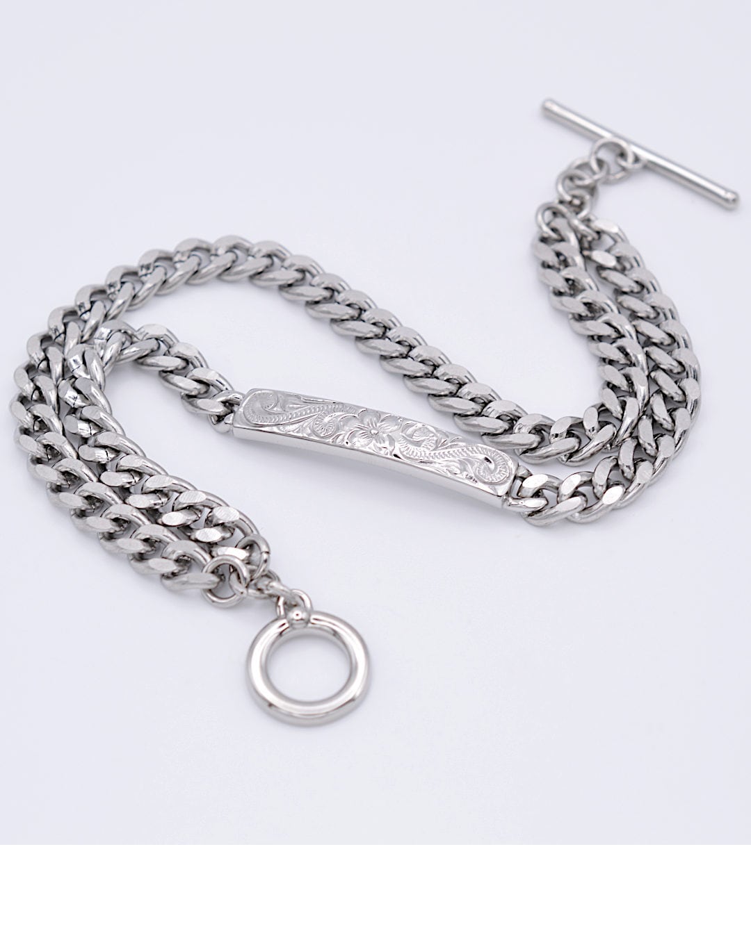 程よい存在感を放つ喜平風チェーンを、2連デザインで仕上げたステンレスブレスレット。