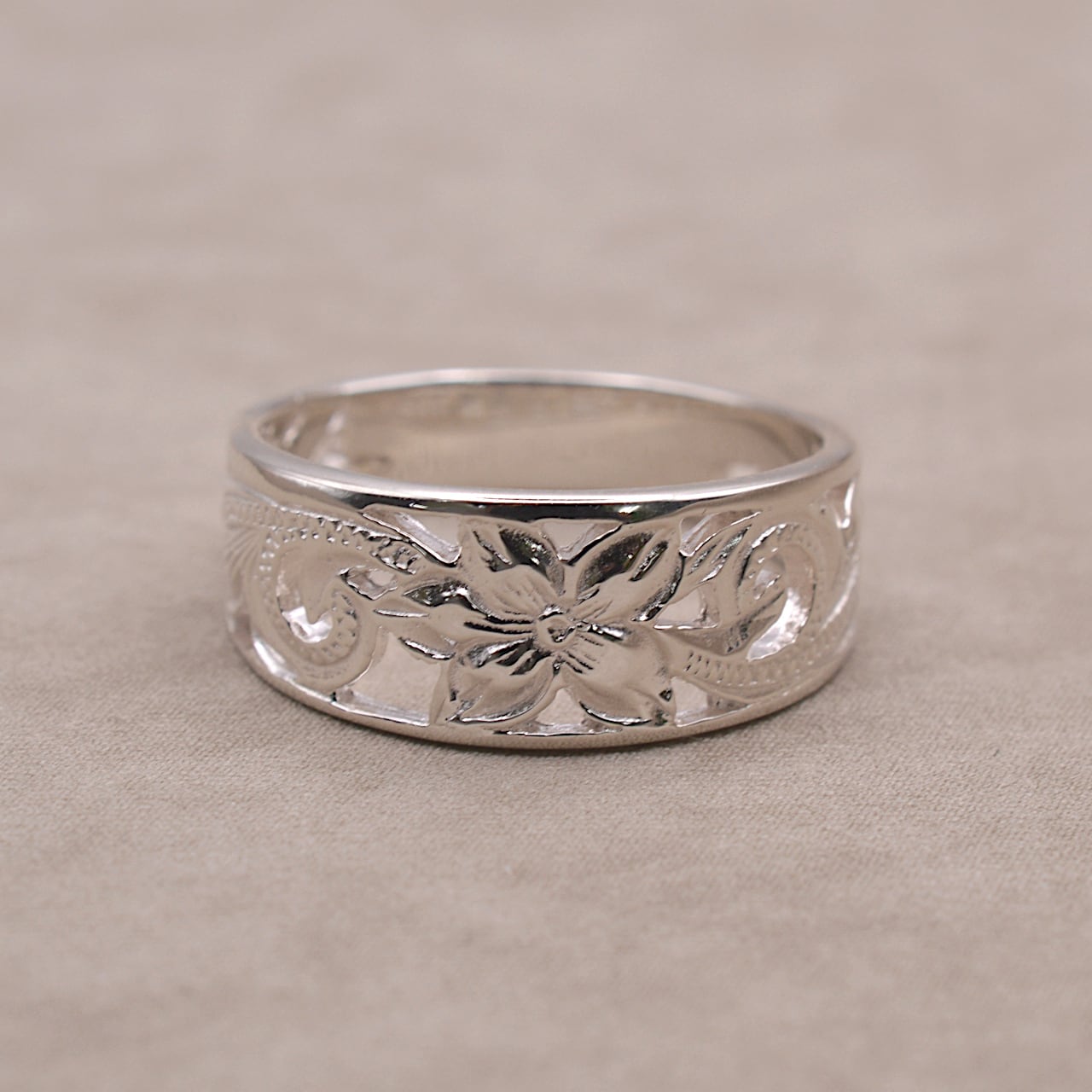 繊細な彫りと美しい透かし模様が魅力のハワイアン透かしリング。