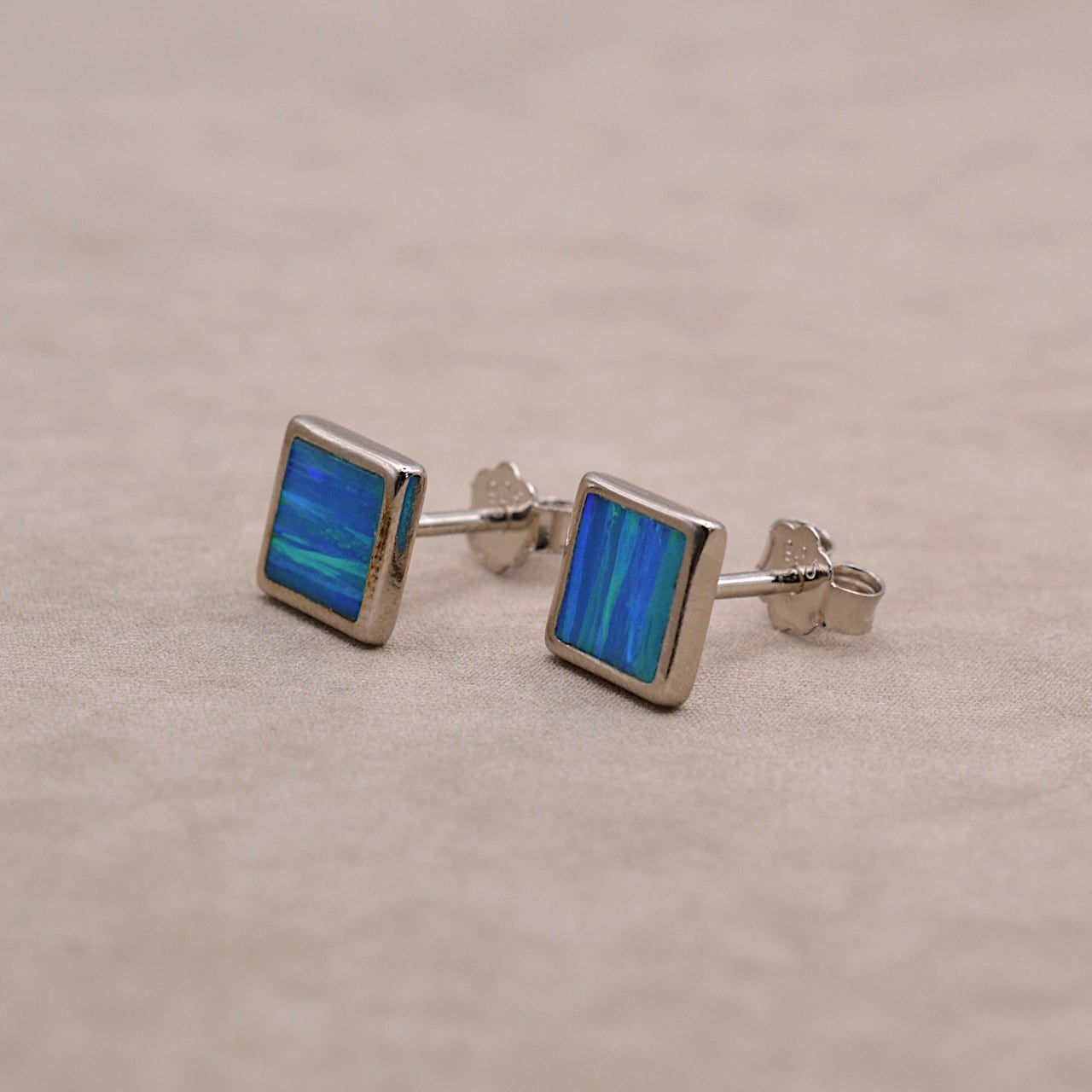 SV square opal silver earring