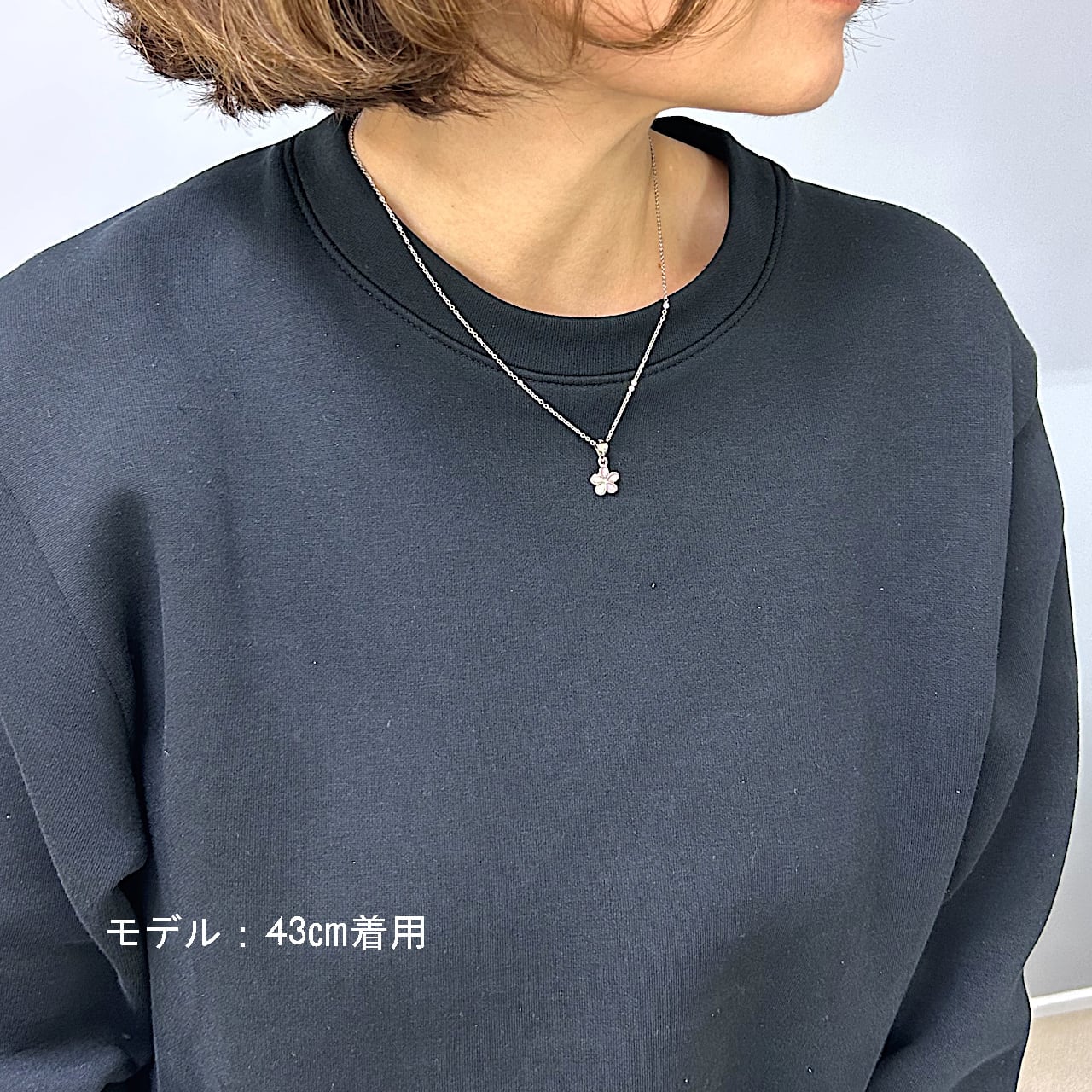 柔らかなピンクの彩りが胸元に優しい華やぎを添えます。