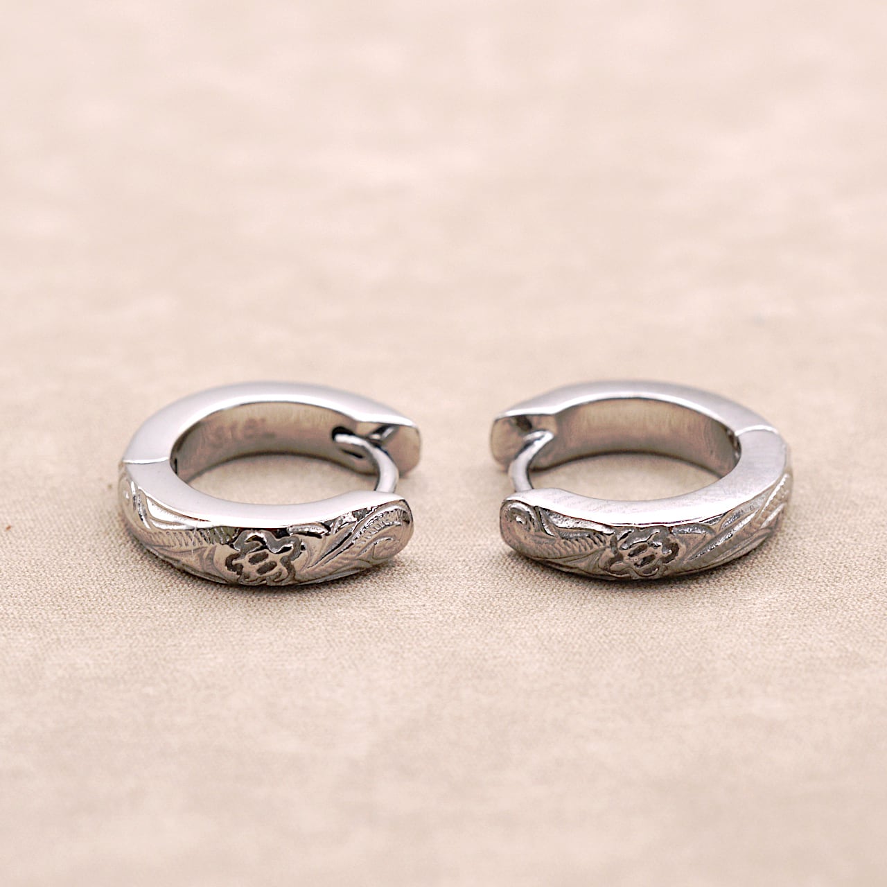 ホヌ(海亀)とスクロール模様を繊細に彫り込んだ、シンプルで上品なステンレスピアス。