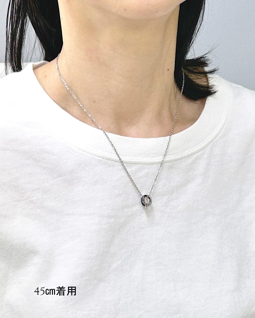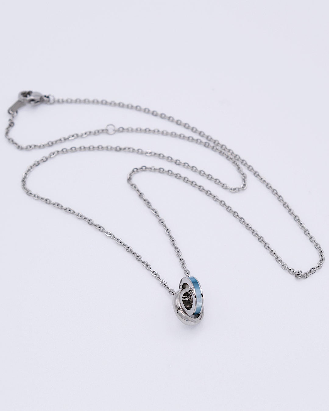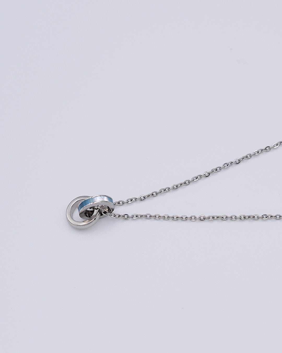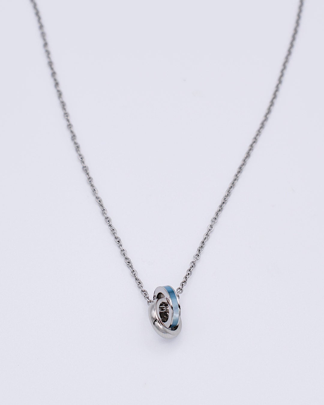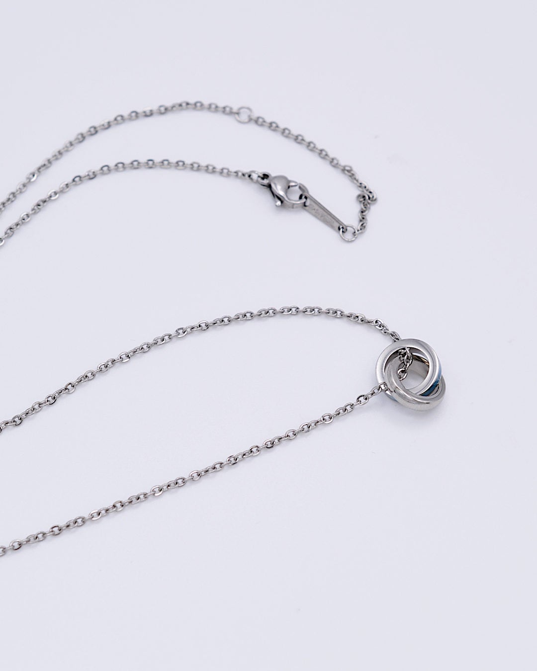 ステンレス素材の小さなダブルリングネックレス
