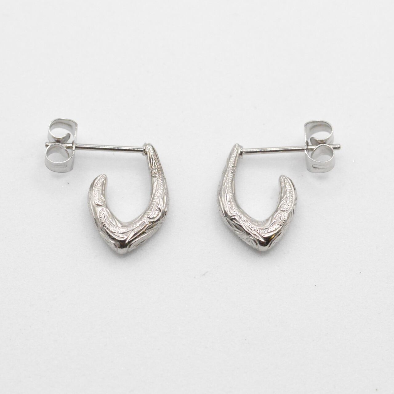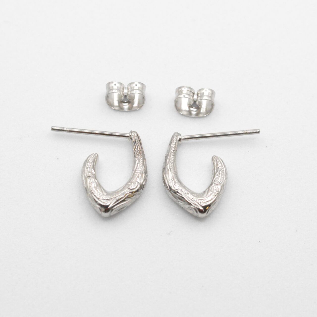 両耳(計2点) ・フィッシュフック 彫デザイン:スクロール(波) 素材:サージカルステンレス316L 税込価格¥9,900 ※金属アレルギーの方もご安心してご利用頂けます。
