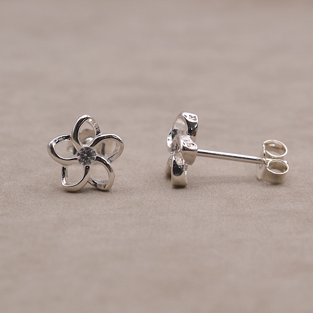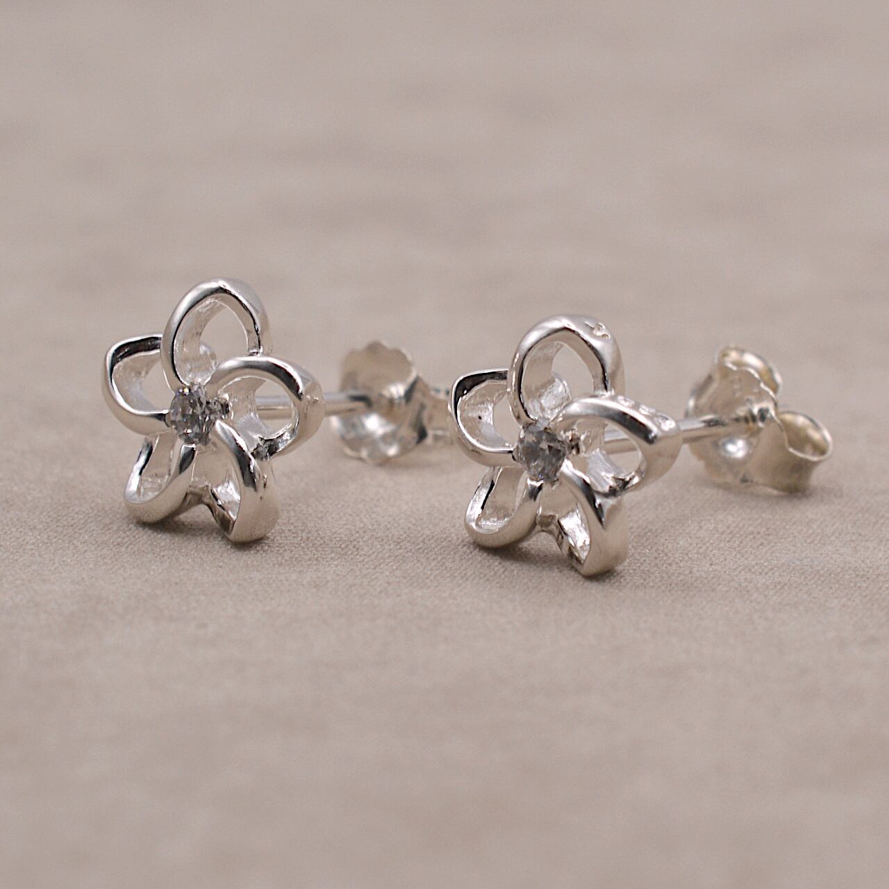 繊細な透かし模様でプルメリアをかたどった、上品な8mmハワイアンピアス。